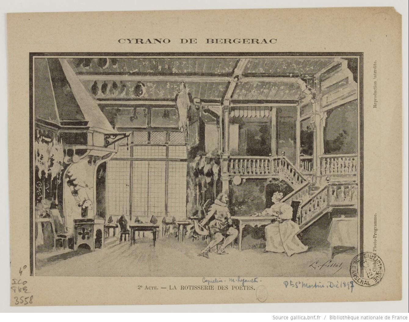 Партнеры не хотели тратиться на декорации – поставляли лишь минимум необходимого. И известно, что накануне генерального прогона все та же супруга Ростана, обозрев в тоске скудную сценографию второго акта, бросилась в соседствующую с театром лавку и закупилась там колбасами, ветчиной и всевозможными вкусностями, чтобы лавка Рагно выглядела богаче и аппетитнее, чем с предложенными реквизитором картонными птицами.